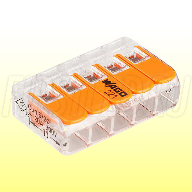 • Клемма WAGO серии 221-415 (5 проводов, 4мм)