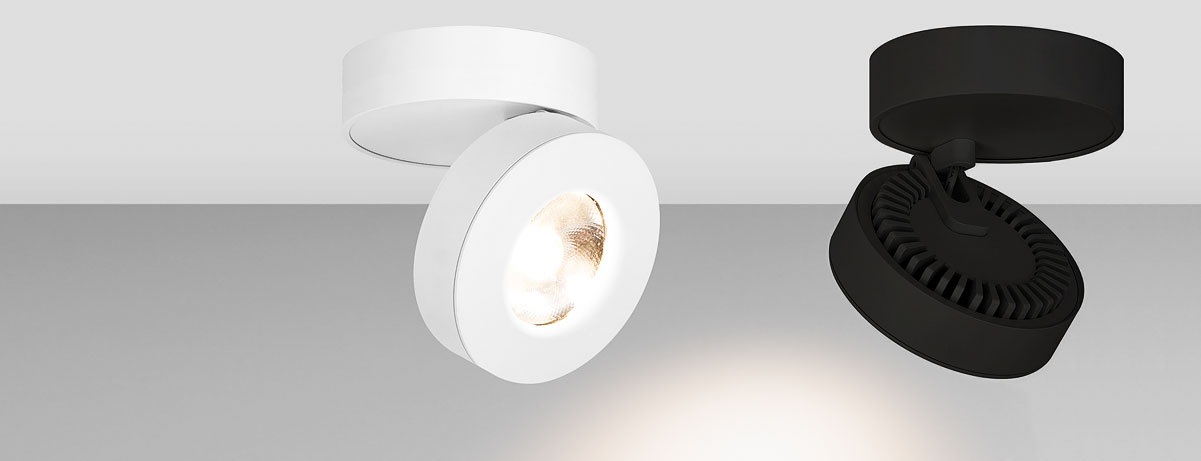 Серия накладных светодиодных светильников MONA R с откидным поворотным корпусом и направленным акцентным освещением.