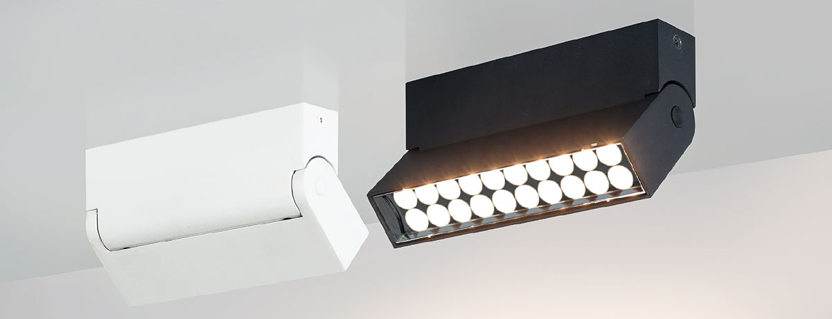 TURNED LOFT – это серия направленных линейных светодиодных светильников накладного типа для потолка с возможностью изменять направление света в пределах 45°.