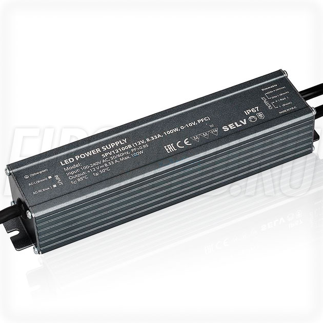 Диммируемый блок питания 100W — 12V, 8.33A, 0-10V, PFC (IP67, Металл-SP)
