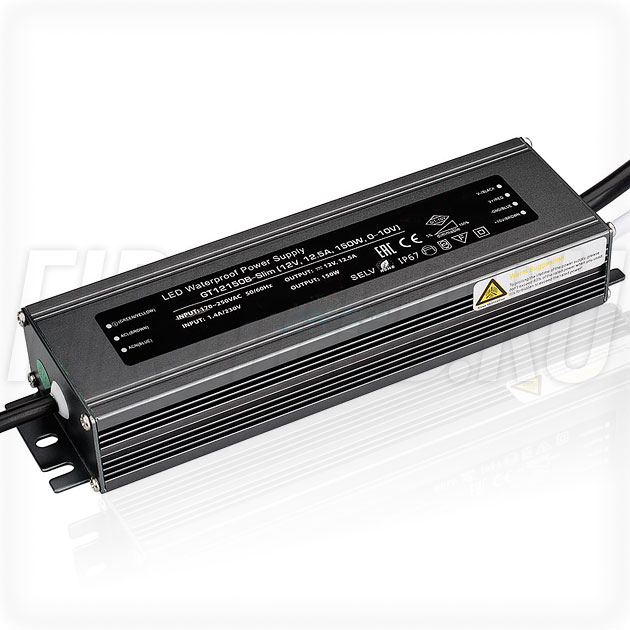 Диммируемый блок питания 150W — 12V, 12.5A, 0-10V (IP67, Металл-GT-Slim)