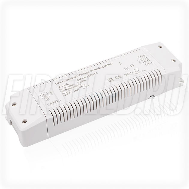 Диммируемый блок питания 75W — 12V, 6.2A, DALI (IP20, Пластик-D)