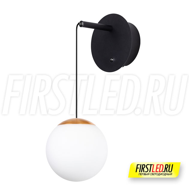 Основание светильника выполнено из алюминия и окрашено в черный цвет. Материал светового шара – стекло.