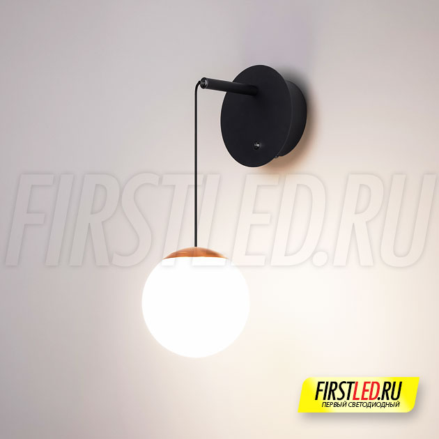 Настенный светодиодный светильник BEADS WALL HANG 6W выполнен из настенного основания и подвесного светового шара который сделан из матового стекла. Регулируемый подвес, максимальная длина 500 мм.