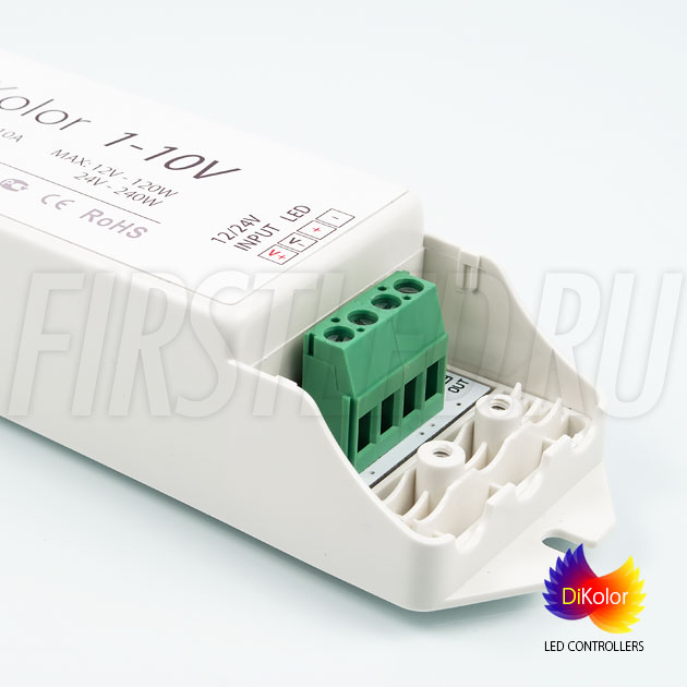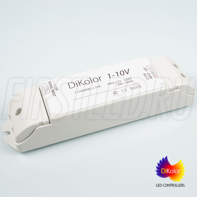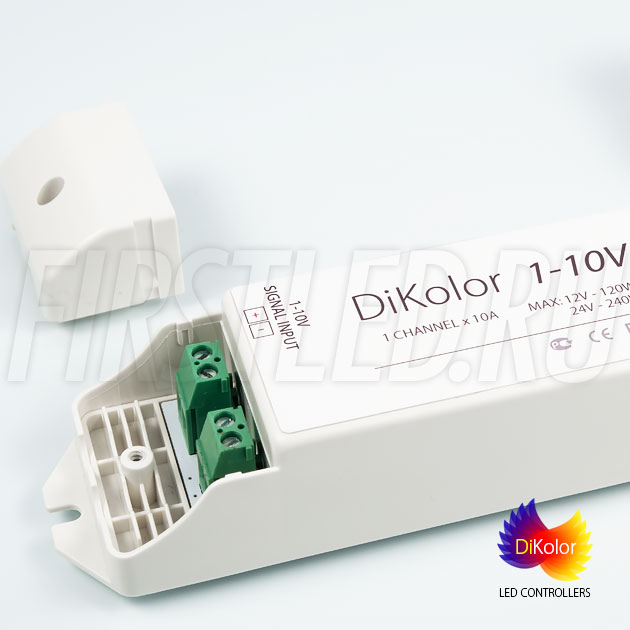 DiKolor 1-10V — светодиодный контроллер для управления одноцветной светодиодной лентой с помощью поворотного диммера 1-10V любого производителя.