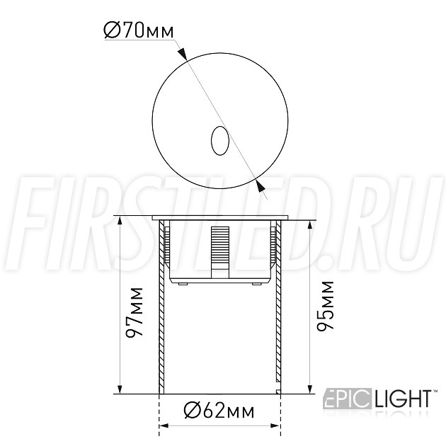 Светильник выполнен из алюминия и окрашен в белый или черный цвет, источник питания и монтажный стакан идут в комплекте.