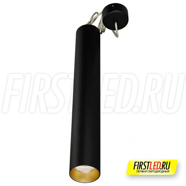 Вытянутый, длинный и узкий подвесной светодиодный светильник на потолок POLONIUM SL Black 8W выполнен в черном алюминиевом корпусе длиной 450 мм с декоративной вставкой на выбор: золотой, черный или белый.