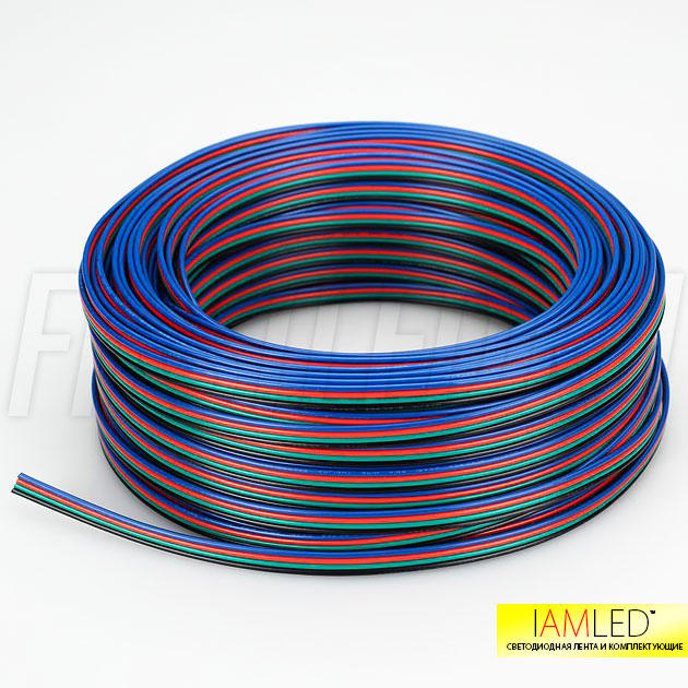 Провод четырехжильный для многоцветной RGB светодиодной ленты, 4 жилы R/G/B/V+.