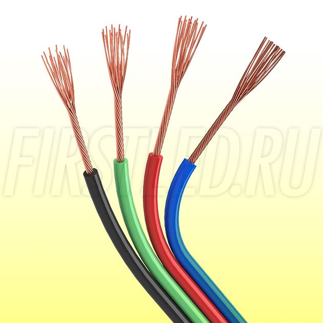 Провод четырехжильный для многоцветной RGB светодиодной ленты, 4 жилы R/G/B/V+.
