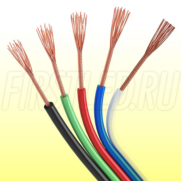 Провод пятижильный для мультицветной RGB+White светодиодной ленты, 5 жил R/G/B/W/V+.
