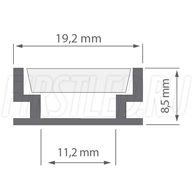 Встраиваемый герметичный профиль TALUM E19.8 выполнен из высококачественного алюминия, предназначен для светодиодных лент шириной до 10 мм.