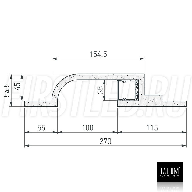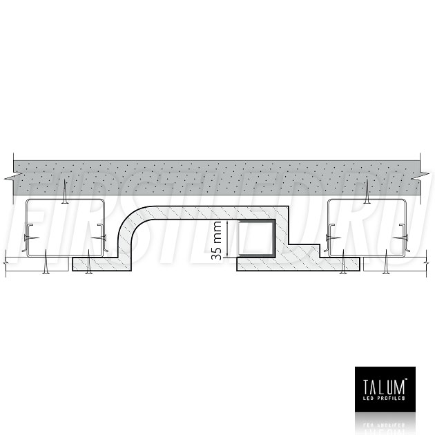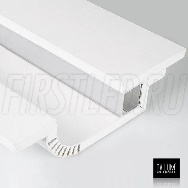 Гипсокартонный модуль TALUM GYPSUM BR.35 образует мягкое скрытое свечение благодаря скругленному модулю. Можно устанавливать световые конструкции с плавным переходом со стены и на потолок. Применяется в качестве основного или дополнительного освещения.