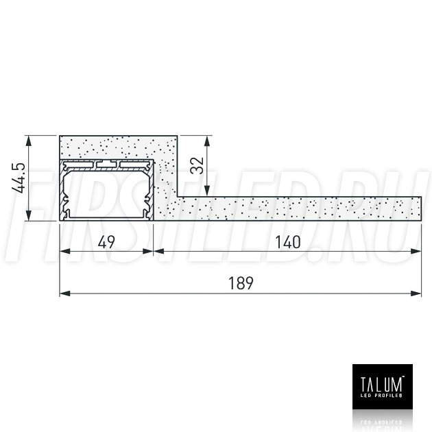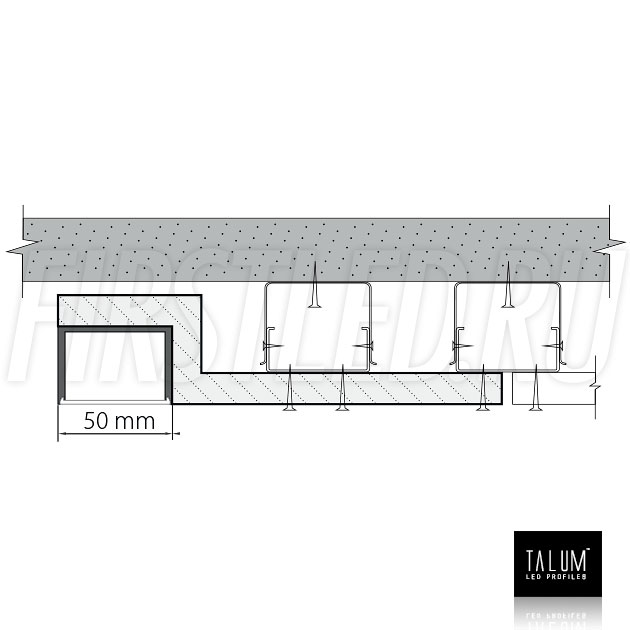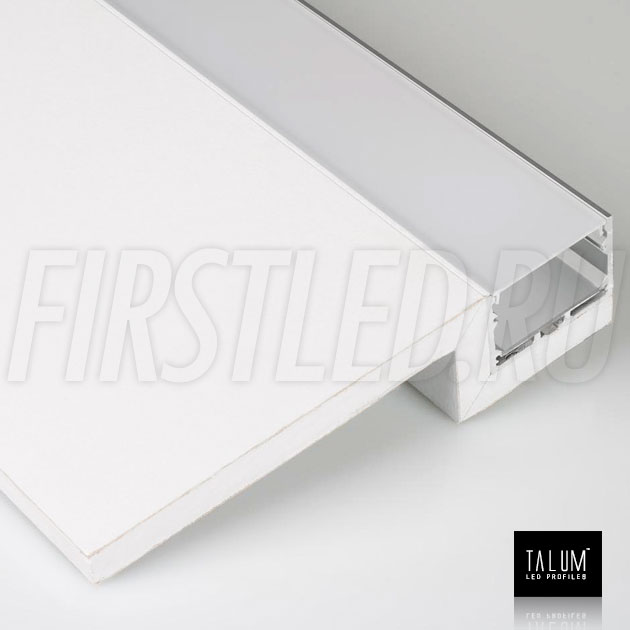 Гипсокартонный модуль TALUM GYPSUM LE.50 для освещения с эффектом обрамления и разграничения светом. Профиль вмонтирован на край гипсокартона, и представляет собой прямую линию света шириной 45 мм, подходит как основной или дополнительный свет.
