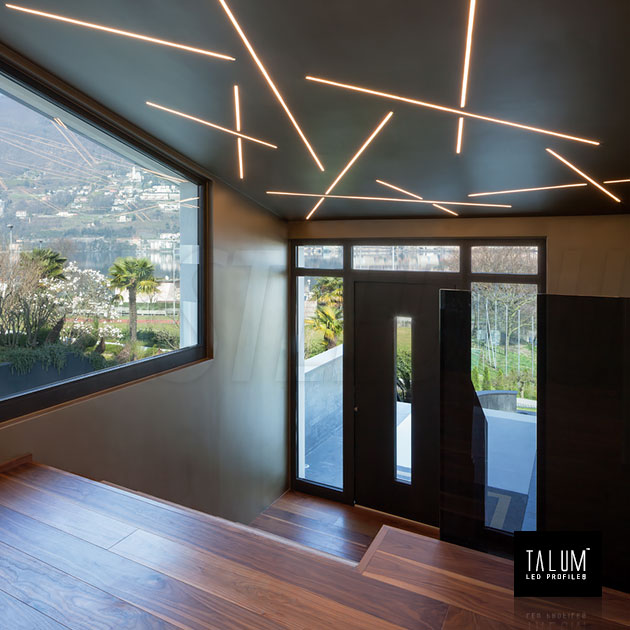 Внутрь профиля устанавливается светодиодная лента, и закрывается сверху рассеивателем на выбор. Таким образом получаются уникальные световые линии без видимых алюминиевых частей!