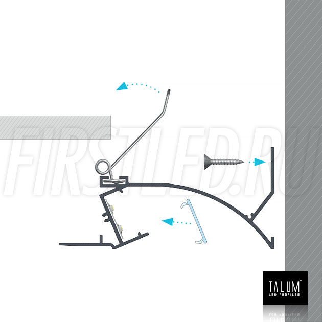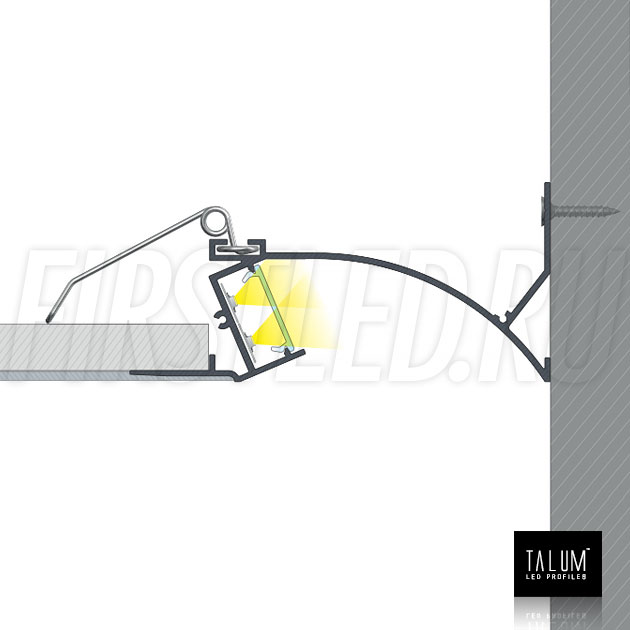Фигурный профиль без рамок TALUM NOFRAME SB.105 для установки вдоль стен (между потолком и стеной). Полукруглая внутрь форма создает мягкий отраженный свет распространяя его вдоль стен и освещая интерьер.