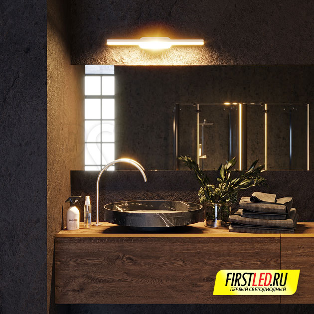 Настенный светодиодный линейный светильник TENERO 13W BLACK в черном корпусе идеально подходит для подсветки зеркал в ванных комнатах и других влажных помещениях благодаря защищенному корпусу IP54.