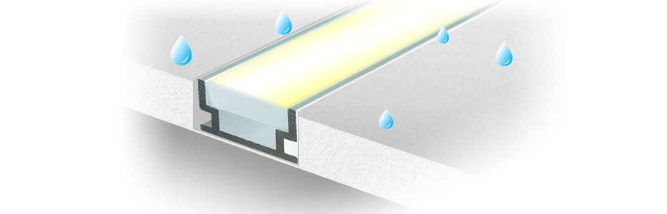 Герметичный светодиодный профиль для установки в ванных комнатах и на улице